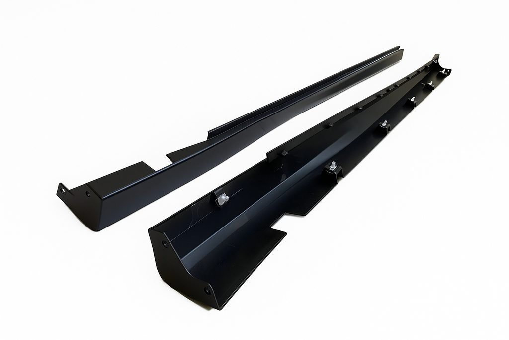 Boční prahové lišty Dodge Charger SRT (2015–2023) jsou sportovní prahy inspirované SRT designem, které přesně pasují na originální prahové hrany. Dodávají vozu agresivnější vzhled a jsou vyrobeny z odolného plastu v povrchové úpravě připravené pro lakování.
