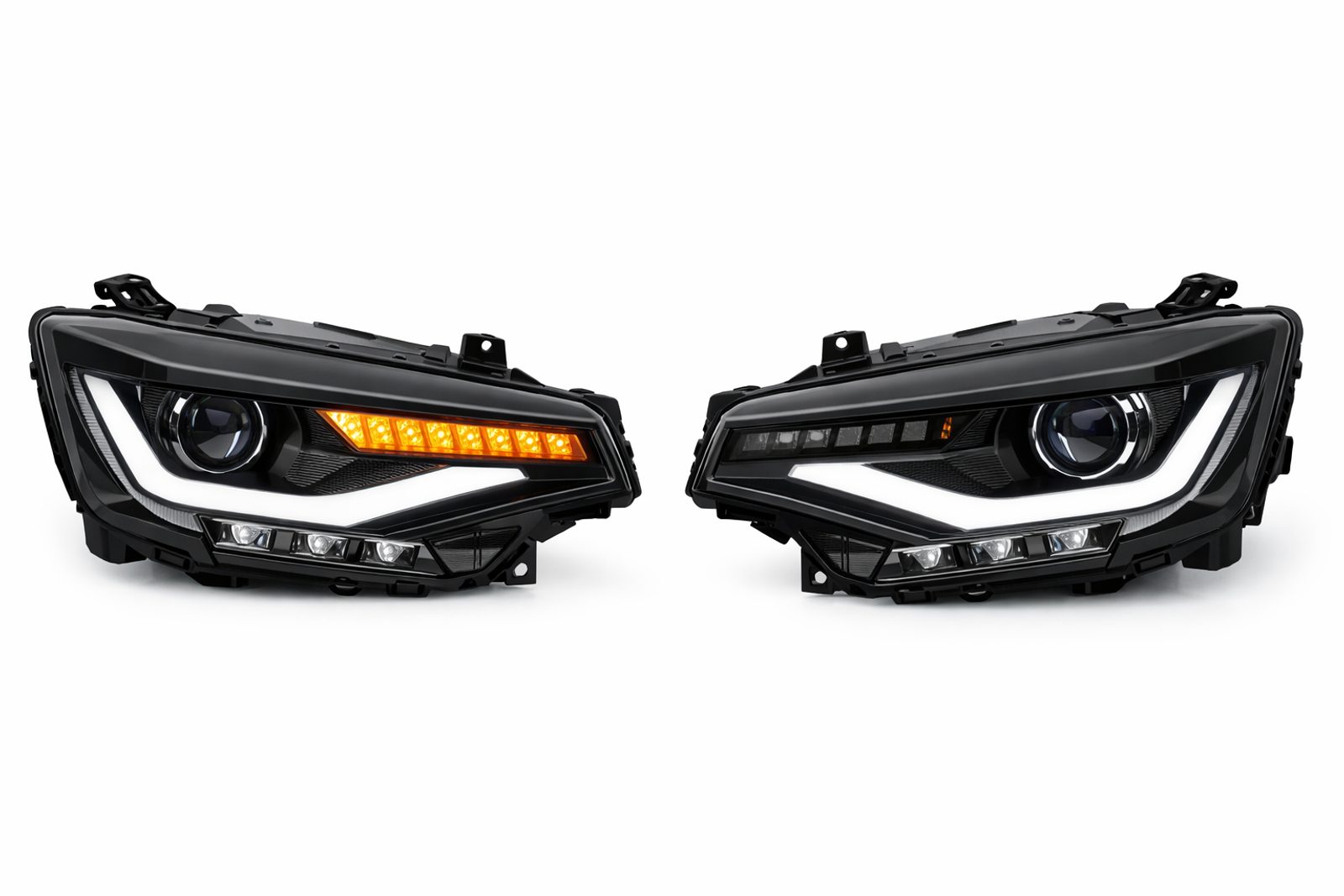 Světlomety využívají moderní LED technologii pro potkávací i dálkové světlo (dle varianty), která zajišťuje rovnoměrný, silný a čistý světelný kužel. Integrované LED denní svícení (DRL) dodává vozu výrazný a moderní vzhled inspirovaný novější generací Camaro.