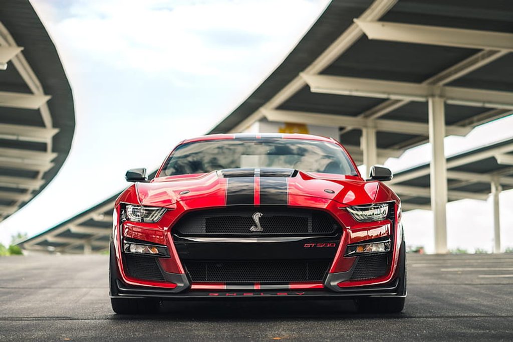 Po: Agresivní a široký GT500 vzhled s velkými vstupy vzduchu, ostře řezanými liniemi a sportovní aerodynamikou.